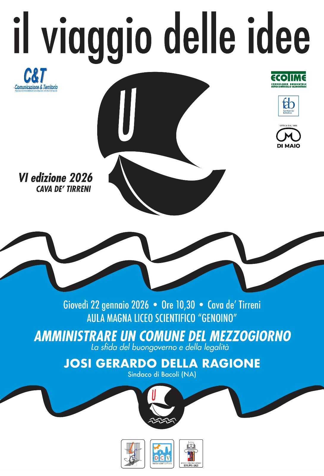 Il primo appuntamento della sesta edizione de IL VIAGGIO DELLE IDEE si terrà il domani giovedì 22 gennaio, alle ore 10,30, presso l’Aula Magna del Liceo Scientifico “Genoino”, e avrà come protagonista Josi Gerardo Della Ragione, Sindaco di Bacoli (NA), il quale si confronterà con gli studenti degli istituti superiori cavesi sul tema Amministrare un Comune del Mezzogiorno. La sfida del buongoverno e della legalità.