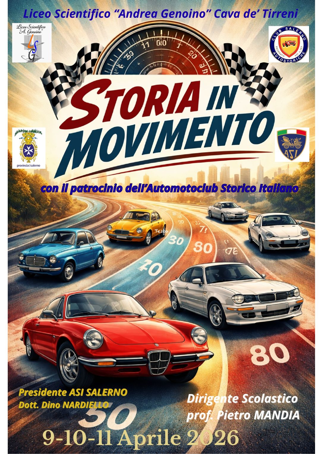 Questa iniziativa unica nella sua specificità è stata resa possibile grazie al concreto supporto della Provincia di Salerno, al patrocinio dell’ASI (autoclub storico italiano) e al prezioso confronto con il Presidente dott. Nardiello che ha collaborato con il Dirigente Scolastico prof. Pietro Mandia e con il prof. Antonio Biagio Fiasco per la ottimale riuscita della manifestazione.