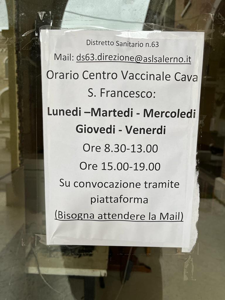 Nel frattempo, a S. Francesco è apparso il cartello con cui si precisano i giorni e gli orari e che la convocazione avviene tramite piattaforma, precisando che bisogna attendere una mail.