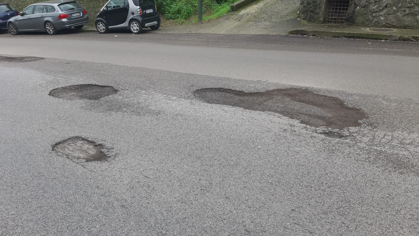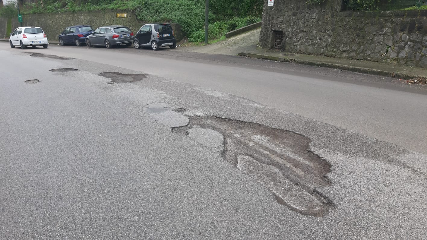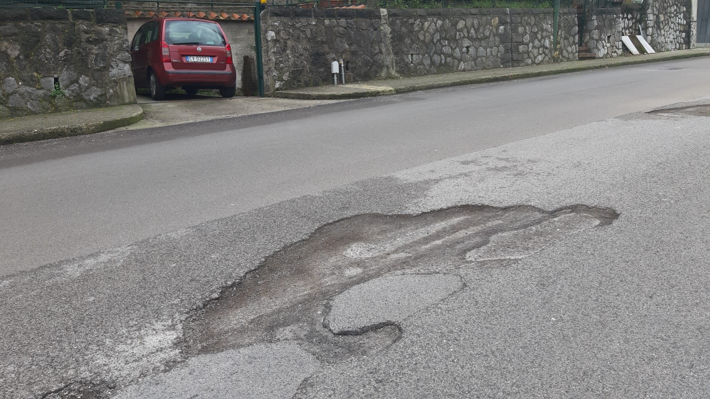 Cava de’ Tirreni, buche sul manto stradale all’altezza della Tengana
