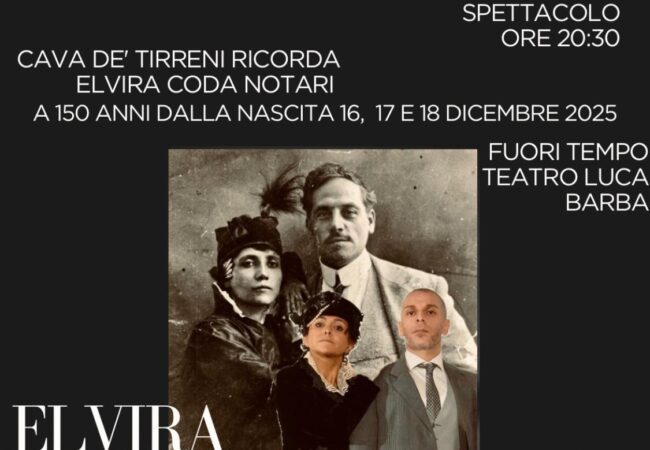 Cava de’ Tirreni ricorda Elvira Coda Notari, pioniera del cinema italiano e prima regista del nostro Paese, nel 150° anniversario della sua nascita. Dal 16 al 18 dicembre 2025, l’Associazione Fuori Tempo porterà in scena al Teatro comunale “Luca Barba” lo spettacolo Elvira la Resistente!, con Geltrude Barba e Giuseppe Cardamone, regia audio di Mariagrazia Lambiase e regia luci di Bernardino Santoriello. La produzione e regia sono curate da Fuori Tempo, con la conduzione di Carmela Novaldi.