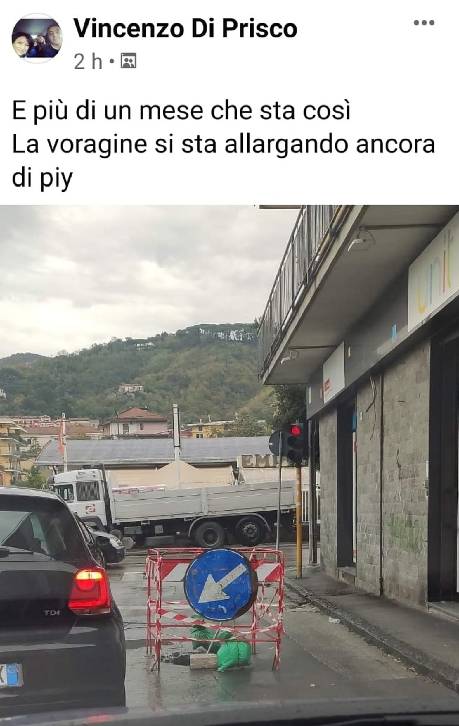 La cosa non è sfuggita ai cavesi che ieri sui social hanno postato un bel po’ di commenti su un post di Vincenzo Di Prisco con tanto di foto della buca in via Tafuri.