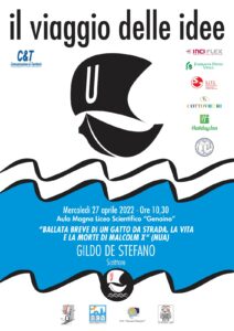 Il sesto ed ultimo appuntamento della quarta edizione de IL VIAGGIO DELLE IDEE si terrà domani 27 aprile, alle ore 10,30, presso l’Aula Magna del Liceo Scientifico “Andrea Genoino” di Cava de’ Tirreni, con la presentazione del saggio “Ballata breve di un gatto da strada. La vita e la morte di Malcolm X” (NUA Edizioni) dello scrittore Gildo De Stefano.