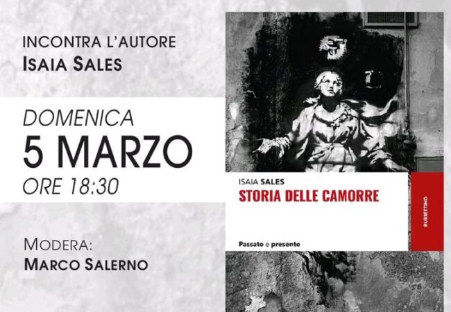 Domani, domenica 5 marzo, alle 18:30, presso il salone del Social Tennis Club, l’avvocato Marco Salerno incontrerà Isaia Sales per parlare del saggio Storia delle Camorre, edito da Rubettino editore.