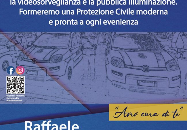 Il programma prevede inoltre un sistema moderno di videosorveglianza ai varchi cittadini per il controllo perimetrale del territorio e un miglioramento dell’illuminazione pubblica, insieme a strumenti digitali per permettere ai cittadini di segnalare criticità. Giordano annuncia anche giunte itineranti nelle frazioni, il rafforzamento delle reti di controllo di vicinato e un piano di ammodernamento della protezione civile, con censimento dei residenti nelle aree più esposte per una gestione più efficace delle emergenze.