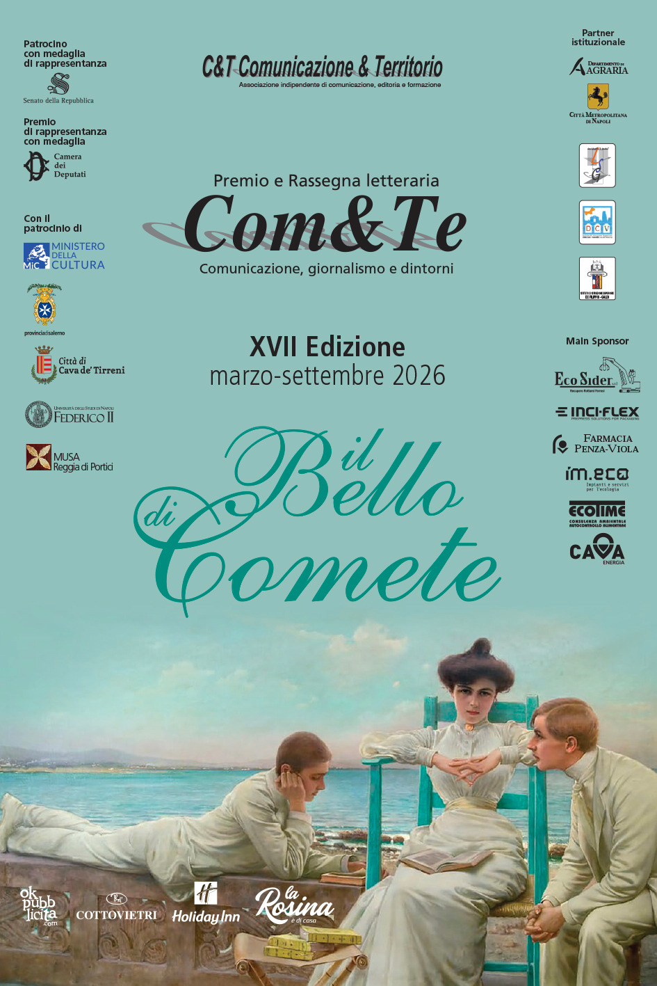 Al via il prossimo venerdì 20 marzo, alle ore 18, presso l’Holiday Inn di Cava de’ Tirreni, la XVII edizione della Rassegna letteraria Premio Com&Te. Riservata quest’anno alla saggistica e alla narrativa che richiamano e declinano il concetto di bello nei sentimenti, nell’ambiente, nel sociale, nell’attualità, nelle arti. Il tema prescelto, infatti, è Il bello di ComeTe.