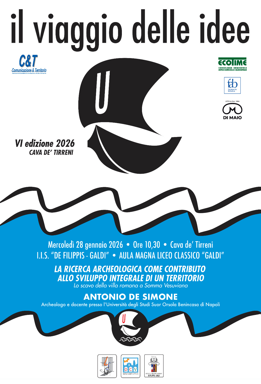 Il secondo appuntamento della sesta edizione de IL VIAGGIO DELLE IDEE si terrà il prossimo mercoledì 28 gennaio, alle ore 10,30, nell’Aula Magna del Liceo Classico “Galdi” e avrà come protagonista il prof. Antonio De Simone, Archeologo e docente presso l’Università degli Studi Suor Orsola Benincasa di Napoli, sul tema La ricerca archeologica come contributo allo sviluppo integrale di un territorio. Lo scavo della villa romana a Somma Vesuviana.