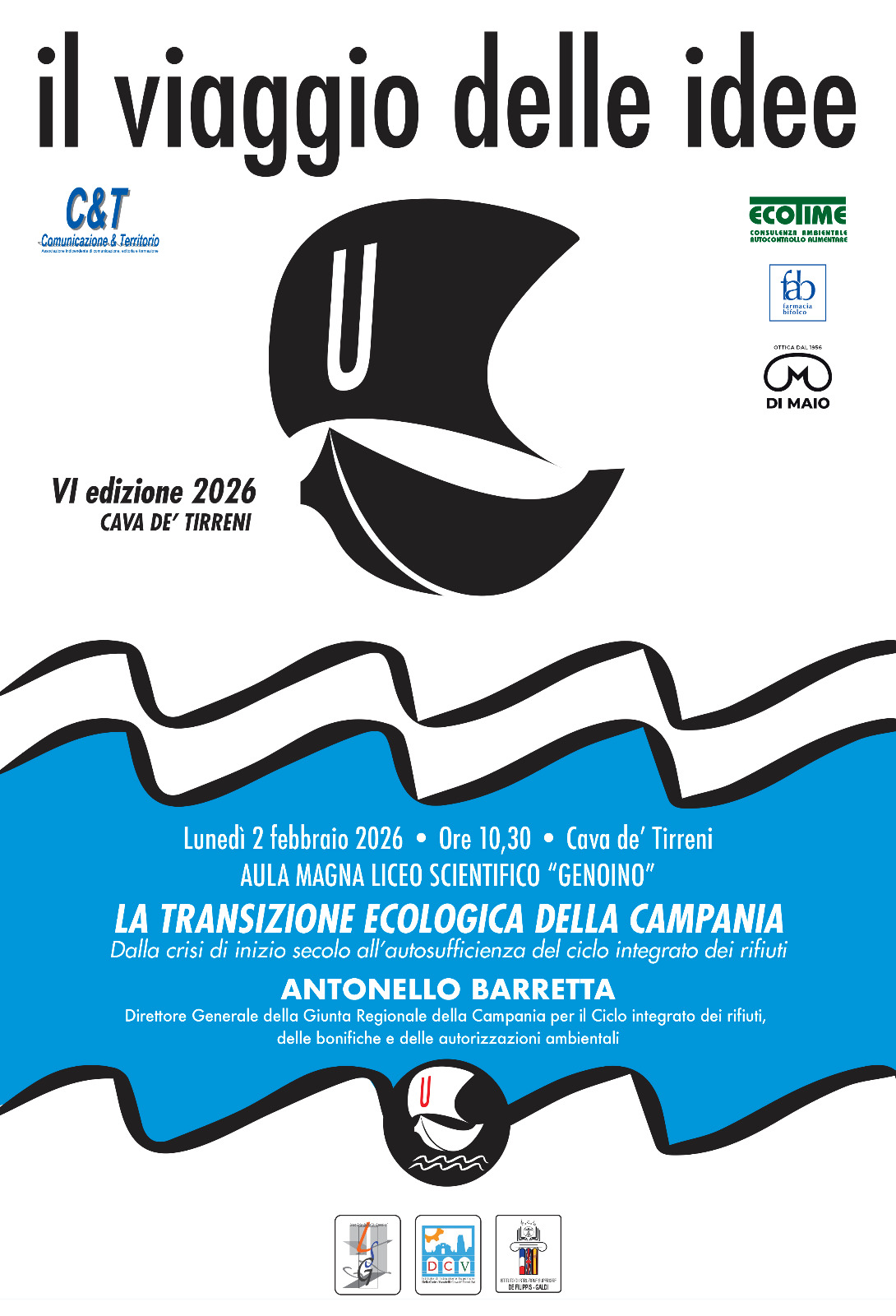 Il terzo appuntamento della sesta edizione de IL VIAGGIO DELLE IDEE si terrà il prossimo lunedì 2 febbraio, alle ore 10,30, presso l’Aula Magna del Liceo Scientifico “Andrea Genoino” di Cava de’ Tirreni, e vedrà come protagonista il dott. Antonello Barretta, Direttore Generale della Giunta Regionale della Campania per il Ciclo integrato dei rifiuti, delle bonifiche e delle autorizzazioni ambientali, sul tema La transizione ecologica della Campania. Dalla crisi di inizio secolo all’autosufficienza del ciclo integrato dei rifiuti.
