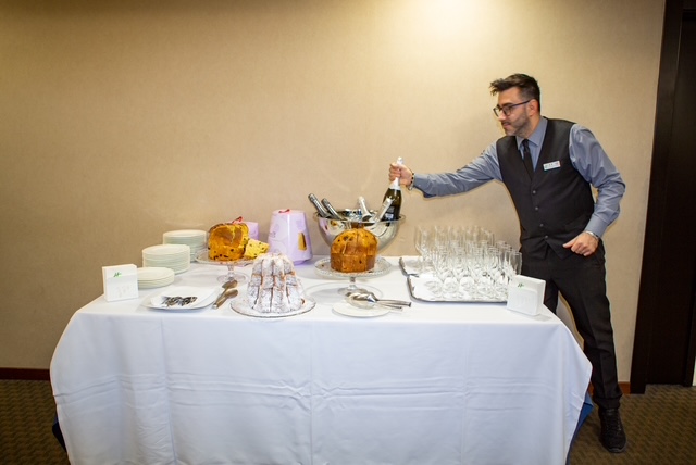 Al termine della riunione si è consumata la parte più “dolce” della serata con il tintinnio dei calici sollevati per il brindisi augurale con prosecco e moscato e assaggi di panettoni e pandori della tradizione natalizia italiana. (foto Aldo Fiorillo)