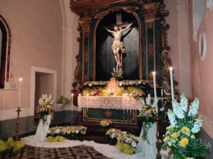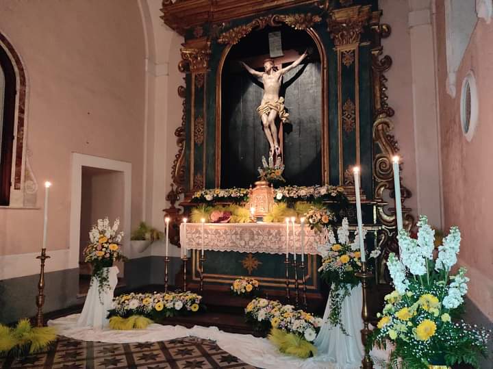 La porta centrale, da dove accedono i fedeli, è stata praticamente aperta per l’intera giornata del Venerdì Santo. E’ evidente che è stata chiusa momentaneamente e per brevissimo tempo. Il parroco, a volte, è costretto ad assentarsi per dare un conforto agli infermi della frazione, con la somministrazione dell’ostia consacrata.
