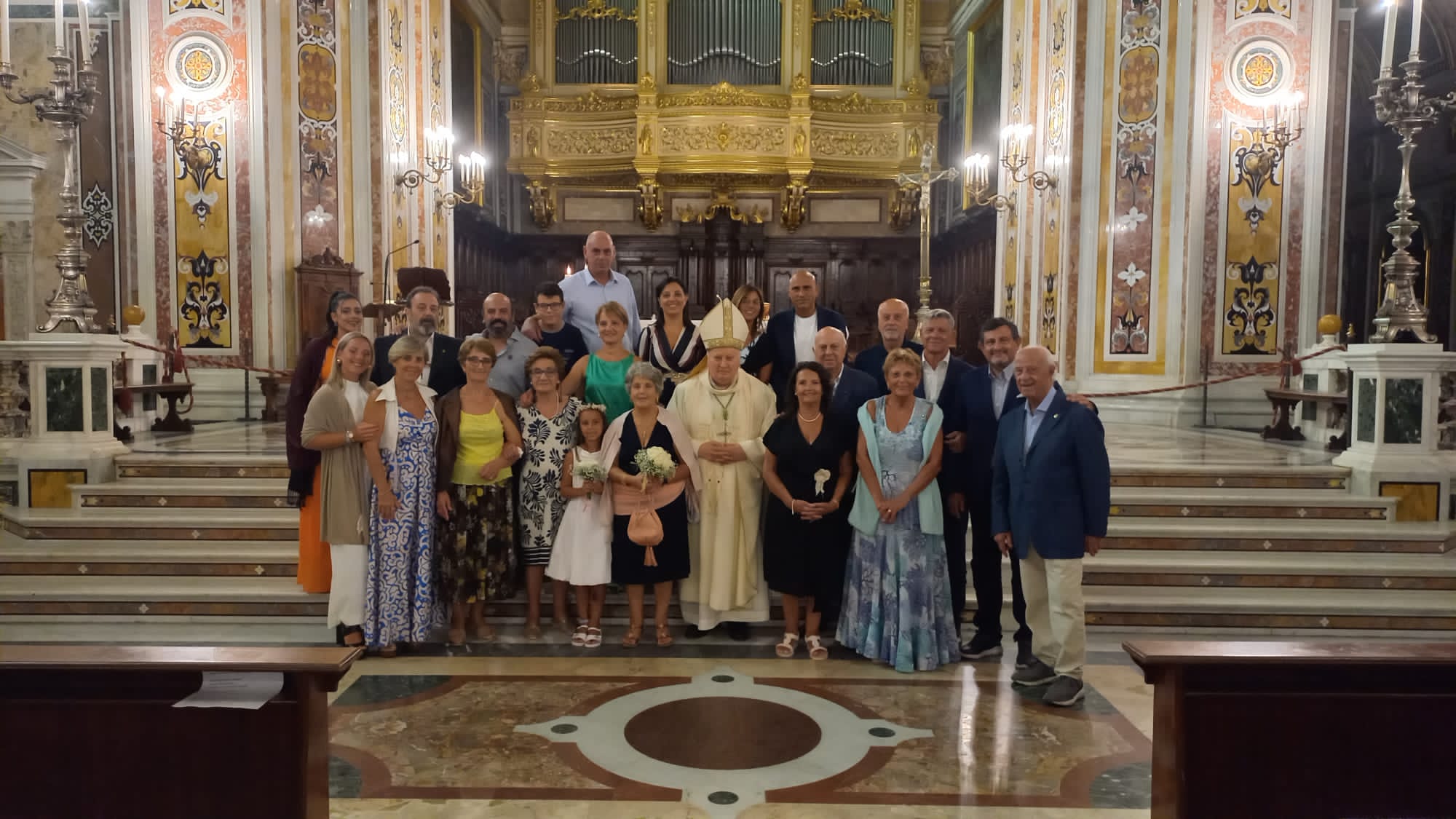 Mons. Soricelli, nell’omelia, ha detto: “Oggi il Signore vi dà la gioia di festeggiare le nozze d’oro, mezzo secolo di vita insieme: è una occasione per fare memoria grata al Signore del sacramento che continua a vivificare e sostenere la vostra vita. Gli sposi cristiani, partono dall’altare, con la benedizione del Signore e a lui costantemente fanno riferimento. Oggi siete qui con il cuore colmo di gratitudine perché riconoscete che insieme al vostro impegno, vissuto con serietà, saggezza e prudenza, è il Signore che vi ha accompagnati, guidati e sostenuti”.