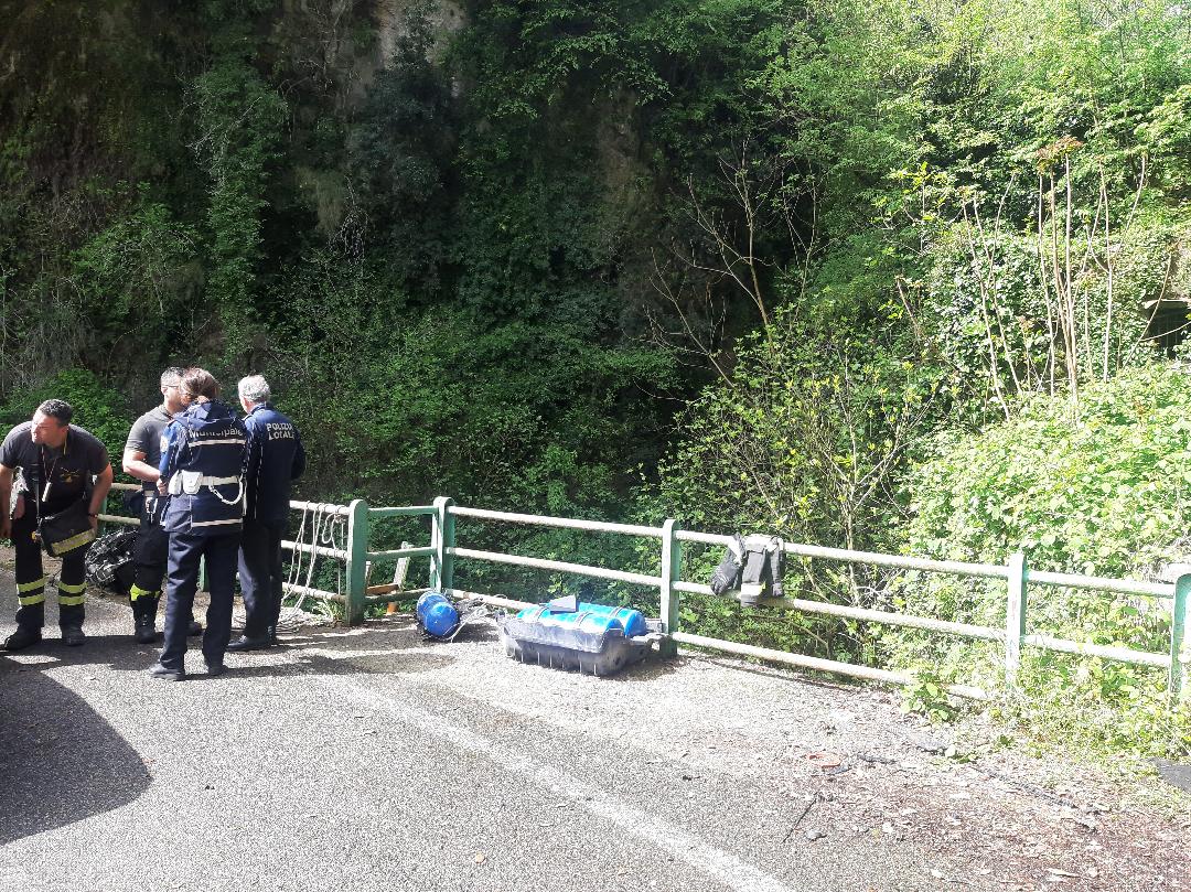 Questa mattina, grazie alla segnalazione di un cittadino alla Centrale Operativa del Commissariato di Polizia di Cava de’ Tirreni che ha allertato la Polizia Municipale, il luogotenente Domenico Tramontano e l’assistente capo Angela Bisogno si sono recati sulla Strada Provinciale 75- Avvocatella nel luogo indicato. “Siamo stati avvisati del ritrovamento di pezzi di auto e bombole di gas metano nei pressi delle grotte del Bonea”, hanno dichiarato i due membri della Polizia Locale che sono giunti sul posto insieme ai Vigili del Fuoco del distaccamento di Salerno Città che hanno rinvernuto numerosi pezzi di due diverse automobili nel vallone sottostante.