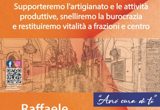 Nel programma non mancano infine interventi strutturali: dalla revisione del ruolo dell’ASI agli investimenti in viabilità, sicurezza, parcheggi e servizi alla persona, con un’attenzione particolare alle frazioni, dove le attività commerciali continuano a rappresentare un punto di riferimento fondamentale per la vita delle comunità locali.