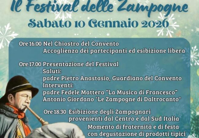 Il suono arcaico e suggestivo della zampogna si appresta a riempire nuovamente le navate e il chiostro del Convento-Santuario di San Francesco e Sant’Antonio. Sabato 10 gennaio 2026, la città metelliana rinnoverà il suo legame con le tradizioni popolari ospitando il Festival delle Zampogne, un evento che promette di coinvolgere appassionati e famiglie in un’atmosfera sospesa nel tempo.