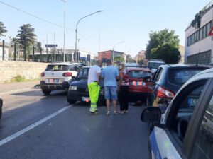 Tre incidenti automobilistici si sono verificati a Cava de’ Tirreni nel primo pomeriggio a poche centinaia di metri l’uno dall’altro e nell’arco di un’ora circa. Grave una persona che viaggiava in bicicletta e si è scontrata con un’auto. Il tutto è avvenuto nel perimetro di via Veneto e la parallela via XXV Luglio, nelle adiacenze della ex Industria Grafica Di Mauro.