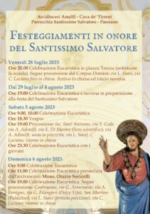 Presentato dall’Arcidiocesi Cava – Amalfi e dalla Parrocchia del Santissimo Salvatore della frazione Passiano il programma dei solenni festeggiamenti in onore del Santissimo Salvatore.