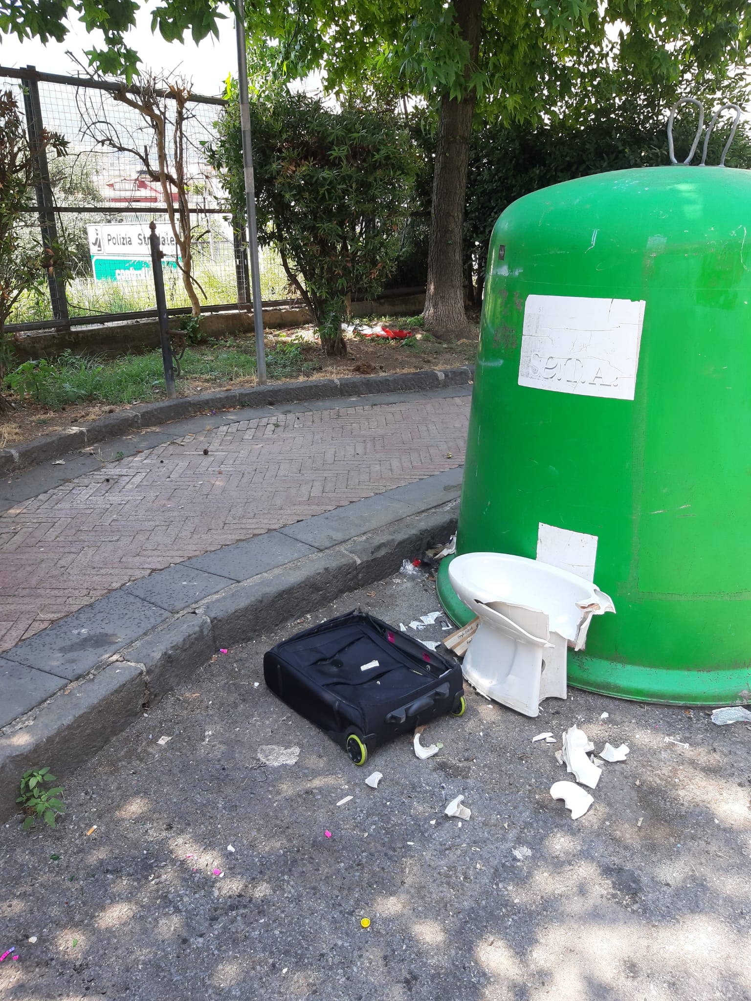 Come si vede c’è di tutto di più. Quello che sorprende però è una circostanza. La foto che invece pubblichiamo sotto c’era stata inviata dalla stessa lettrice lo scorso 23 luglio, in pratica, l’altro venerdì. Ritraeva lo stesso sito, dove la facevano da padrone un sanitario e una valigia. Non l’avevamo pubblicata perché in fondo per la nostra città queste piccole discariche a cielo aperto non sono più una novità. Il fatto singolare è che in quattro giorni la discarica è cresciuta. Ora il sanitario è in buona compagnia. Insomma, non poteva essere diversamente. Anche per i rifiuti, infatti, vale la teoria della finestra rotta. In pratica, un rifiuto abbandonato chiama un altro e poi un altro ancora, così come con le ciliegie.