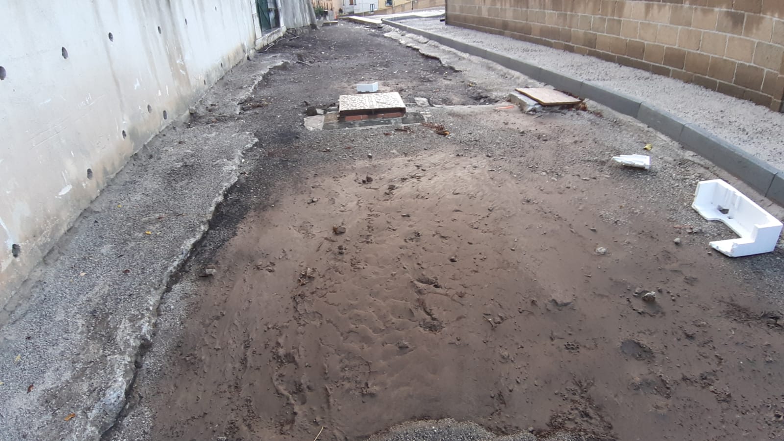 Un vero e proprio strato di fanghiglia ricopre la gran parte della strada. Pozze di acqua qua e là ed il materiale dilava con la pioggia lungo via Carlo Santoro, rendendo sdrucciolevole anche questa arteria.