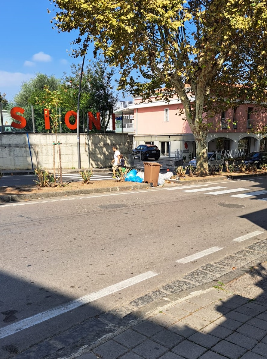 Cava de’ Tirreni, viale Romano: micro discarica di rifiuti sulle strisce pedonali