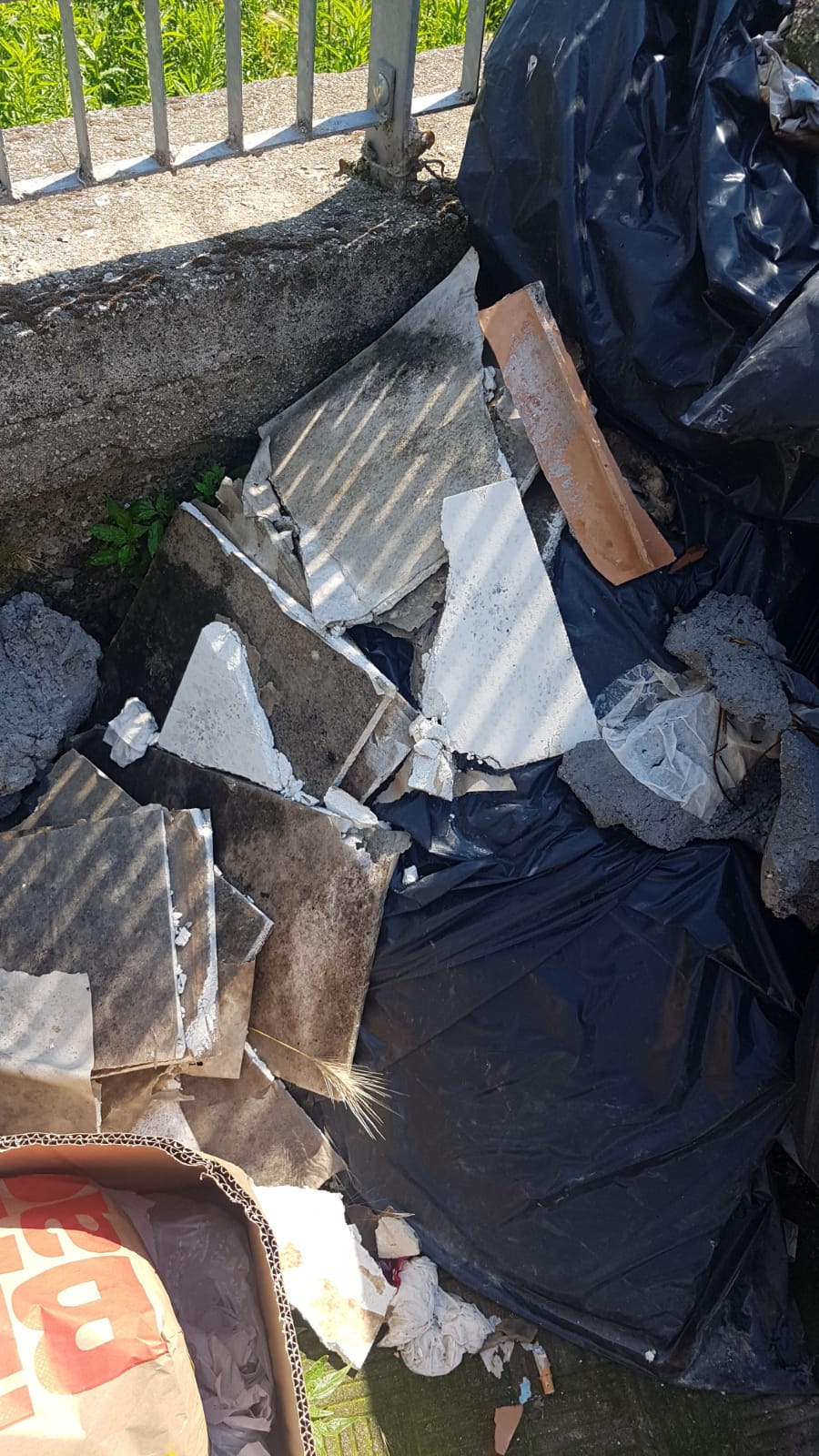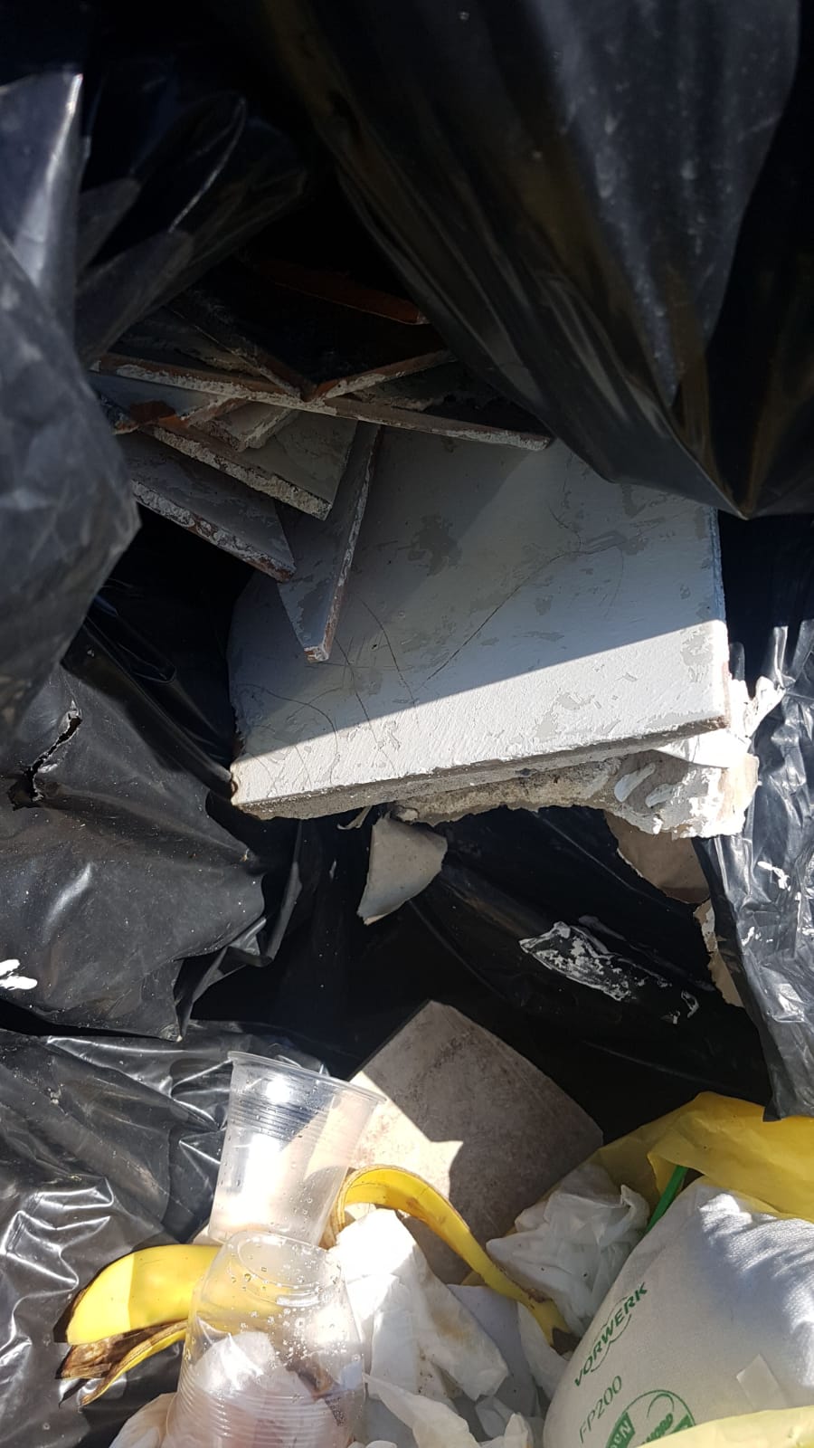 In queste buste c’è di tutto: scarti alimentari, residui di controsoffittature, mattonelle, tegole e altro materiale di risulta.