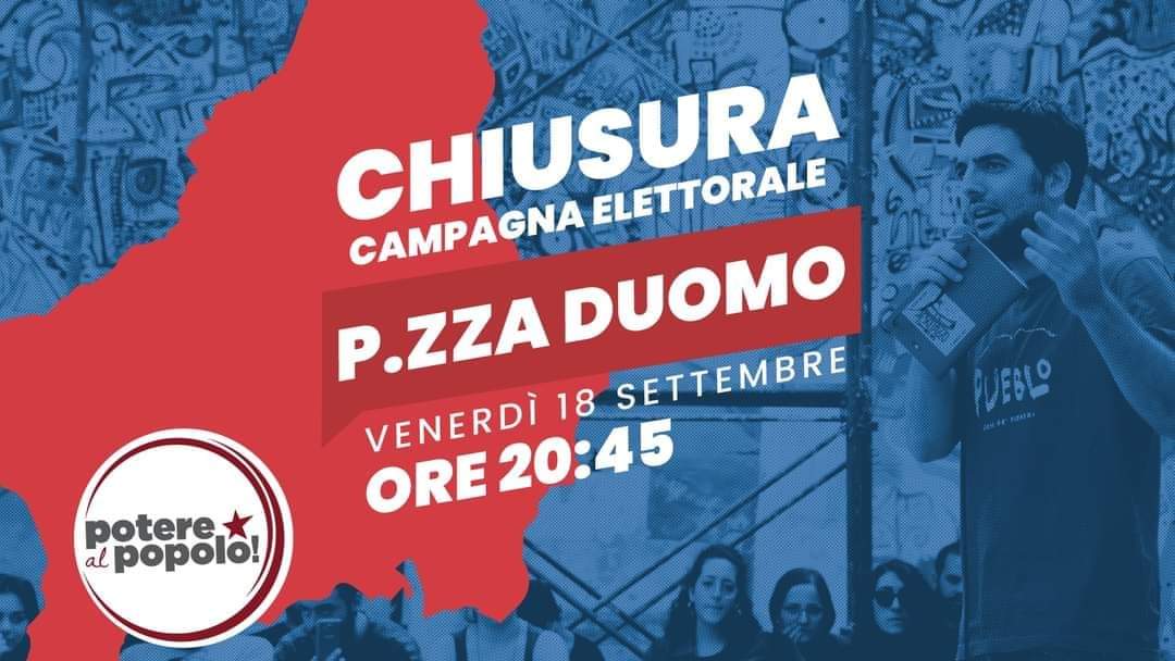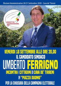 Si ritorna, invece, in piazza Duomo per i comizi di chiusura di Umberto Ferrigno, candidato della lista Identità + Tradizione, alle ore 20.00, e Davide Trezza di Potere al Popolo, alle ore 20.45.