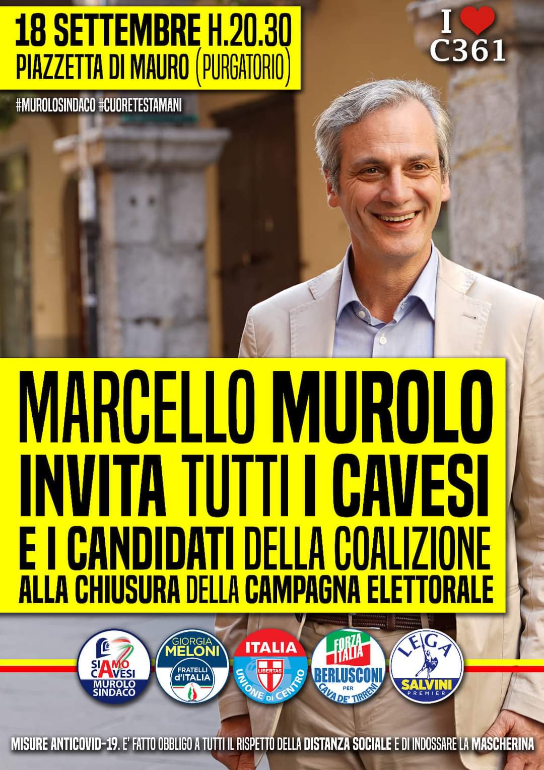 Per Marcello Murolo, candidato del centrodestra, invece, l’appuntamento conclusivo è alle ore 20.30 in piazzetta Di Mauro (Purgatorio).