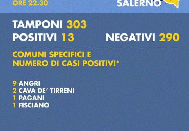 I dati forniti comprendono l’elaborazione dei tamponi esaminati su cittadini residenti nella provincia di Salerno, presso il laboratorio dell’ospedale di Salerno. Oltre i 2 casi a Cava, sono stati registrati: 9 positivi ad Angri, 1 a Pagani, 1 a Fisciano.