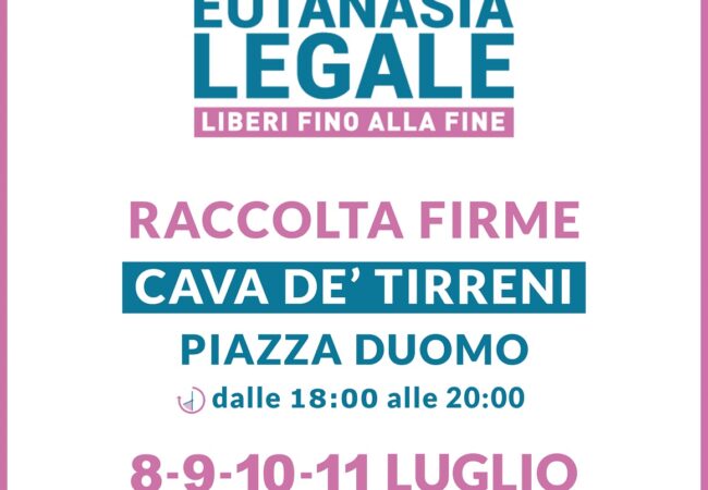 Raccolta firme a favore del referendum Eutanasia Legale, promosso dal “Comitato Referendum EUTANASIA LEGALE” dall’Associazione Luca Coscioni.