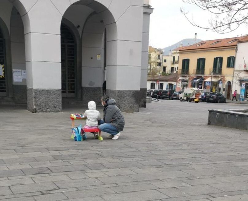 Emblematica del drammatico momento che sta vivendo la scuola è la foto che sta facendo il giro dei social dove è stata immortalata una bambina con il grembiule e la cartella seduta al banco davanti al portone del palazzo di Città insieme al padre. Una foto simbolo scattata questa mattina in piazza Abbro e che ben rappresenta la protesta spontanea che sta prendendo piede tra alcuni genitori cavesi.