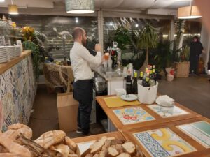 Il padrone di casa, Emiliano Santucci, un giovane affabile ed entusiasta, ha accolto i suoi ospiti offrendo loro un assaggio abbondante e molto variegato dei cibi prelibati che ha preparato con il suo staff. Una serata ben riuscita e apprezzata, allietata dalle musiche di un sax di una sassofonista particolarmente virtuosa.