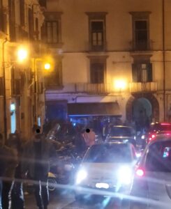 Secondo la testimonianza che ci è pervenuta sembraa una qualsiasi notte pre-covid, se non fosse per la presenza di auto delle forze dell’ordine, intervenute probabilmente per porre fine alla violazione del coprifuoco.