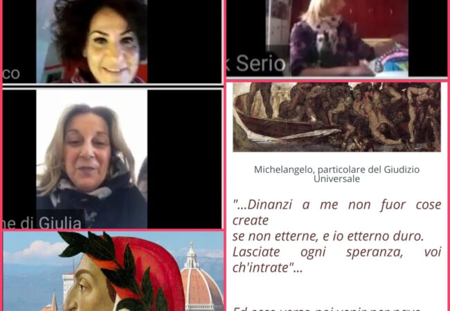 Nella giornata dedicata al grande poeta e alle sue opere, in primis la Divina Commedia, i ragazzi, supportati da alcuni genitori, si sono subito mobilitati per creare video o audio con letture interpretate o recitazioni di alcuni dei passi più conosciuti della Divina Commedia. Insieme hanno realizzato i video che presto verranno pubblicati sui canali social per testimoniare la partecipazione della classe all’iniziativa nazionale.
