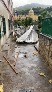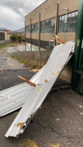Smottamenti di terreno, alberi sradicati che si sono abbattuti sulle auto, strade allagate, lamiere e altro materiale edile divelto che si sono riversati sulla palestra, sulla scuola e sulle strade.