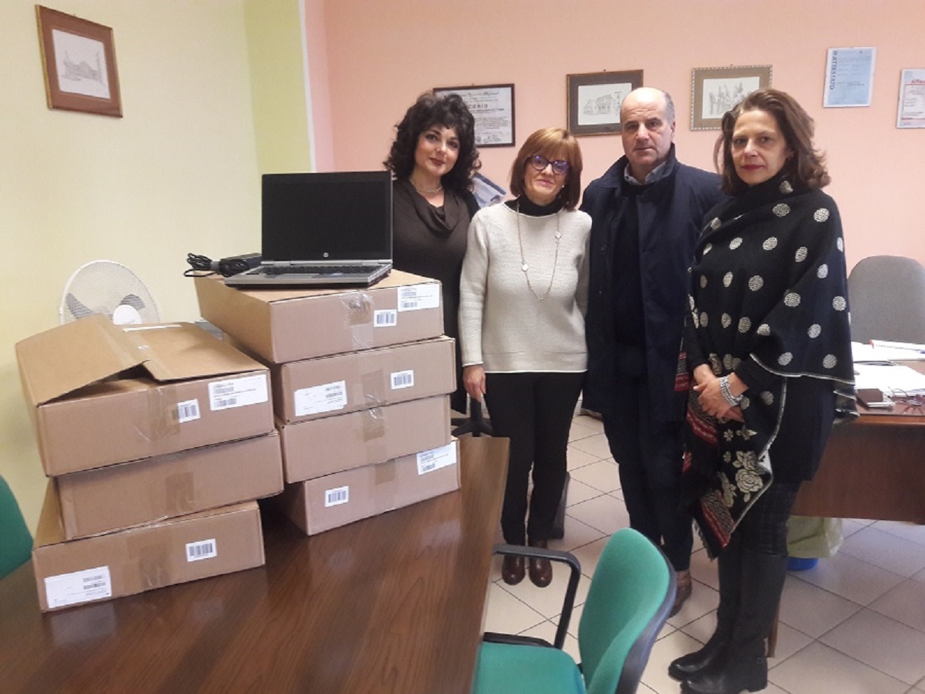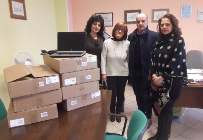I pc saranno destinati al Plesso della SS. Annunziata in sostituzione di quelli rubati nell’istituto nello scorso mese di settembre. Grande soddisfazione espressa dalla Dirigente scolastica, Raffaelina Trapanese: «Adesso la nostra didattica potrà finalmente ritornare ad essere anche informatica»