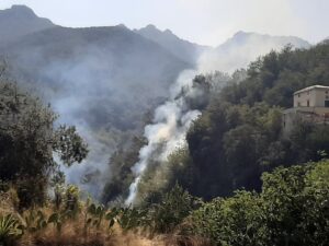 Incendio in corso sulla SP75 tra Cava de’ Tirreni e Vietri sul Mare. La zona interessata è quella che collega la frazione meteliana di San Cesareo, all’altezza del santuario dell’Avvocatella, e la località Dragonea.