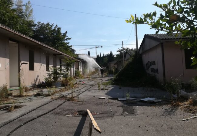 Incendio in località Maddalena, nel comune di Cava de’ Tirreni. L’incendio si è sviluppato poco meno di un’ora fa, nel pieno assolato pomeridiano, in uno dei prefabbricati abbandonati che insistono sulla zona.