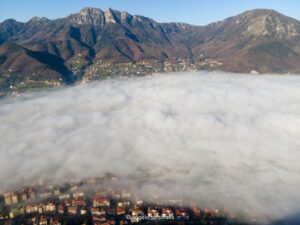Gli esperti definiscono questo fenomeno come nebbia da avvezione, che si forma quando l’aria umida passa per avvezione, ovvero un movimento orizzontale dei flussi d’aria sopra il terreno freddo e viene così raffreddata.