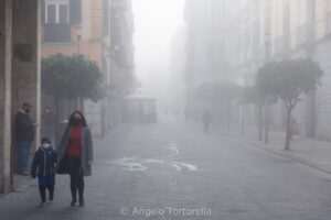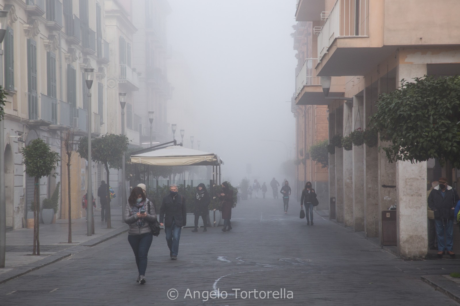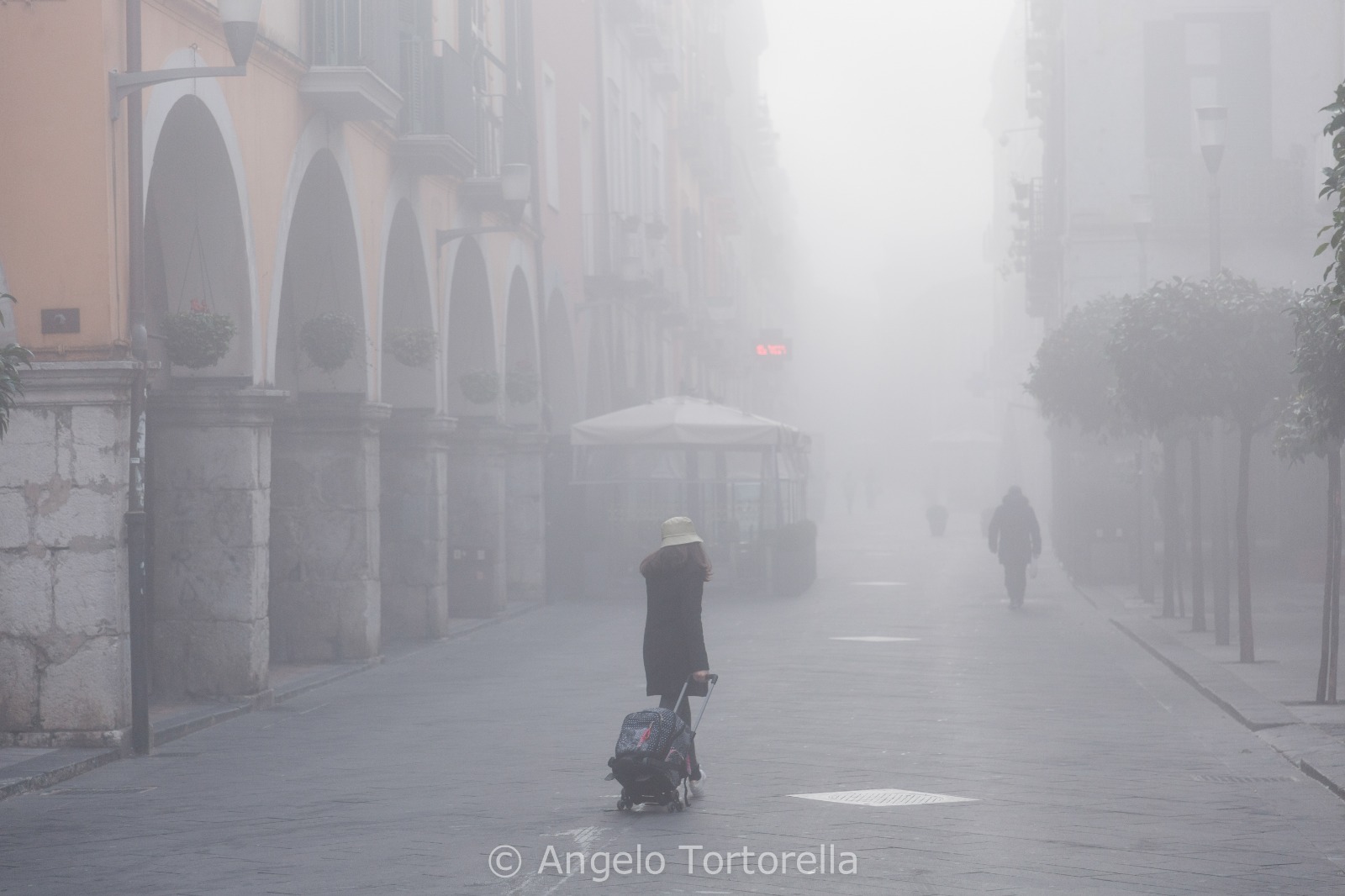 Per la nostra città è un fenomeno raro essere immersi in una cortina di nebbia e non riuscire a vedere il cielo e le nostre montagne, ma addirittura avere difficoltà a scorgere qualcosa a meno di centro metri.