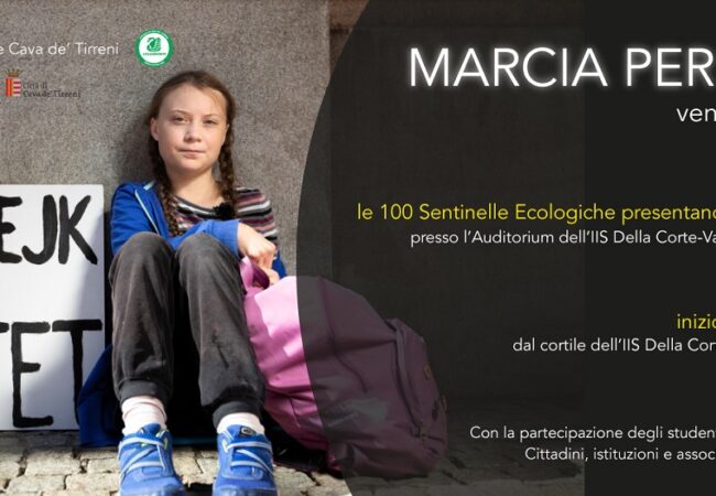 Prima del corteo, alle ore 9, nell’auditorium dell’Istituto “Della Corte-Vanvitelli”, si terrà la giornata conclusiva del progetto “Sentinelle Ecologiche”, organizzato e realizzato nelle scuole superiori cittadine da Legambiente Cava de’ Tirreni – Circolo “Terra Metelliana”, nell’ambito del progetto Green Generation Hub. Nel corso dell’iniziativa agli studenti sarà attribuito il riconoscimento ufficiale di “Sentinella Ecologica” ed un allievo di ciascuna scuola potrà leggere il “Manifesto per il Pianeta”, che rappresenta il lavoro conclusivo del progetto. Il documento illustra le azioni pensate dagli studenti per migliorare il territorio cavese e la propria scuola. All’incontro parteciperà l’europarlamentare S&D (Partito Democratico) Nicola Caputo e, in collegamento web, ci sarà Veronica Manfredi, Director of Quality of Life della Commissione Europea. All’appuntamento interverranno anche istituzioni cittadine.