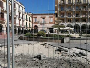 Cava, piazza Duomo si rifà il look: restyling della pavimentazione attorno alla Fontana dei Delfini