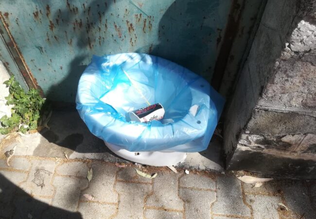 Il rifiuto giace lì da più di cinque giorni. C’è da dire che quello sul marciapiede dove è stato posato è il luogo preposto per gli abitanti della zona per conferire i rifiuti indifferenziati che verranno raccolti dalla società preposta. Evidentemente, però, questo sanitario non può essere depositato lì e quindi resta in giacenza. Con il passare dei giorni sta diventando un contenitore di rifiuti e al bicchiere di Coca Cola che si vede nella foto si stanno aggiungendo carte e bicchieri di plastica. Un’opera postmoderna multifunzionale, appunto!