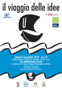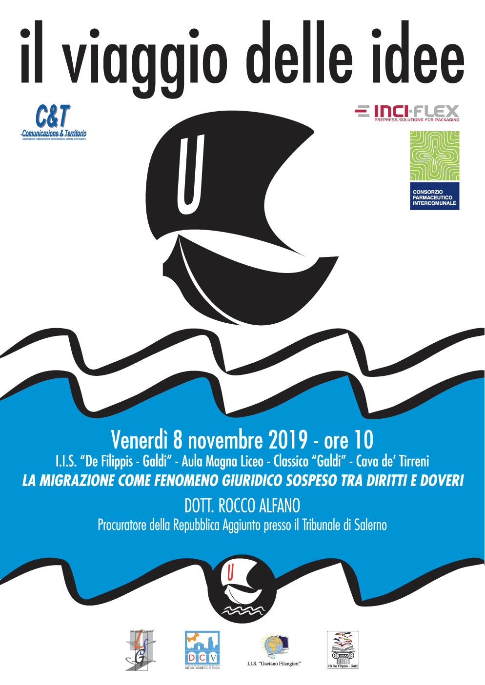 Il quarto e il quinto incontro de IL VIAGGIO DELLE IDEE con i giovani studenti degli Istituti statali di istruzione secondaria di secondo grado “De Filippis – Galdi”, “Della Corte – Vanvitelli”, “Filangieri” e Liceo Scientifico “Genoino” di Cava de’ Tirreni, si terranno venerdì 8 e sabato 9 novembre prossimi, alle ore 10, rispettivamente nell’Aula magna del Liceo Classico “Marco Galdi” e nell’Auditorium dell’I.I.S. “Della Corte–Vanvitelli” di Cava de’ Tirreni .