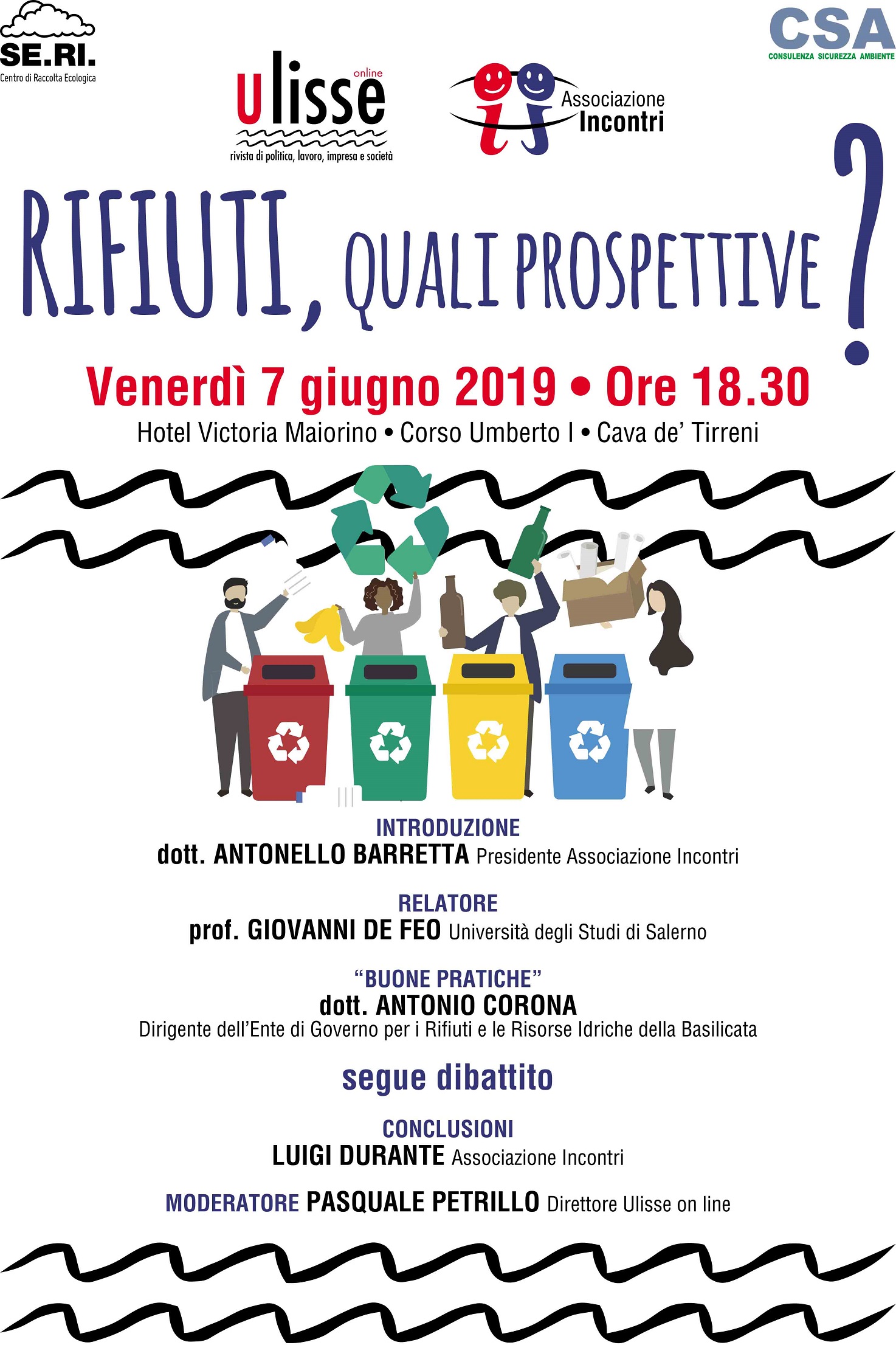 Si intitola “Rifiuti, quali prospettive?” il convegno organizzato dalla neonata Associazione “Incontri”, in collaborazione con la testata giornalistica Ulisse online, che si terrà venerdì 7 giugno, alle ore 18.30 presso l’Hotel Victoria Maiorino di Cava de’ Tirreni.