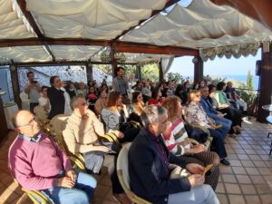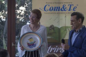 Al termine del salotto, cone di consueto, la consegna a Cecilia Lavopa dell’omaggio in ceramica realizzato dall’azienda CottoVietri di Cava de’Tirreni, questa volta da parte di Salvatore Criscuolo, mecenate della cultura e squisito anfitrione dell’Hotel La Conca Azzura, situato in uno scenario tra i più incantevoli e suggestivi della Costa Diva, poggiato su una roccia e sospeso tra cielo e mare.