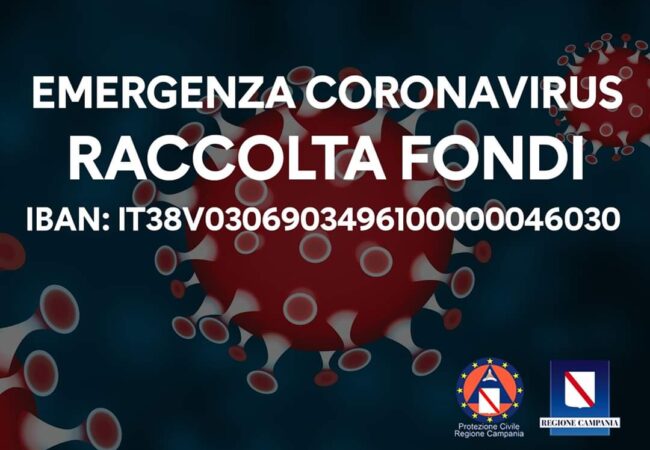 A tal fine la Regione Campania comunica che chiunque volesse contribuire alla raccolta fondi potrà utilizzare il conto intestato alla Regione Campania IBAN IT38V0306903496100000046030 avendo l’accortezza di indicare la causale “COVID-19 DONAZIONE“.