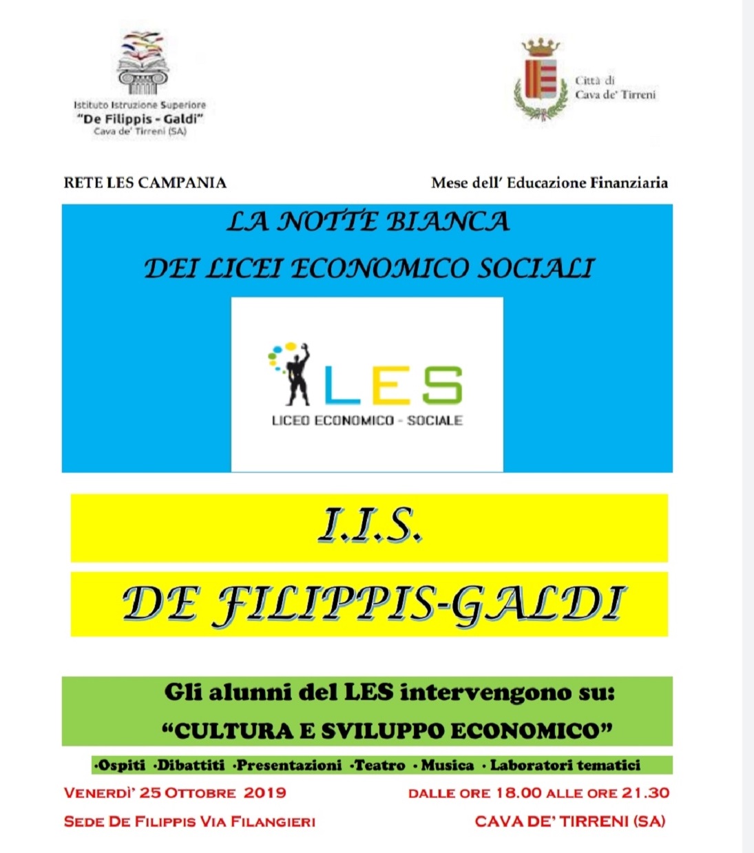 Venerdì 25 ottobre al Liceo “De Filippis-Galdi” saranno gli studenti i protagonisti nella Notte Bianca Nazionale dei Licei Economico Sociali (LES).
