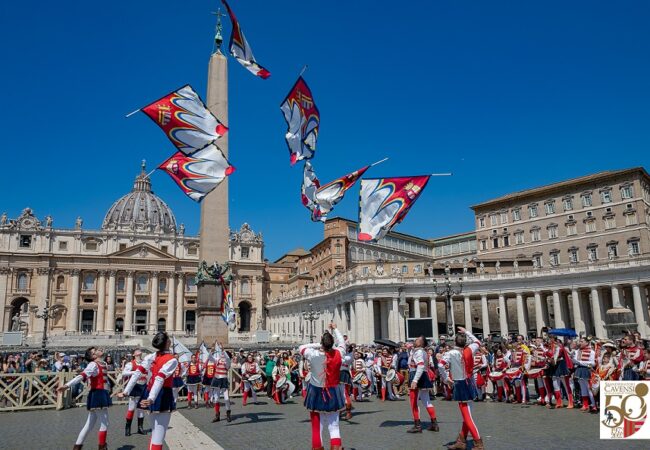 Nell’ambito delle celebrazioni per il cinquantesimo anniversario della fondazione, gli Sbandieratori Cavensi hanno partecipato mercoledì 24 maggio all’udienza generale di Sua Santità Francesco in Piazza San Pietro.