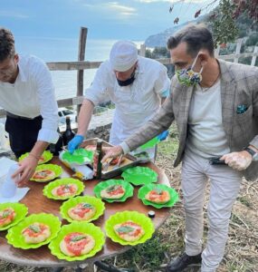 (nella foto sopra la cena degustazione a km 0 al Calajanara restaurant dell’hotel La Conca Azzurra di Conca dei Marini a conclusione della giornata di ieri)