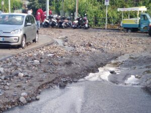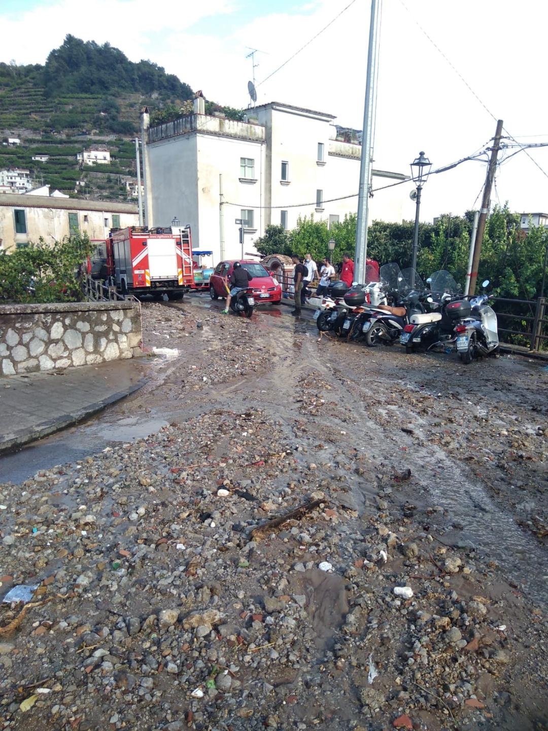 A Minori, la città del gusto, un’ondata di fango proveniente dai declivi confinanti con la vicina Ravello nel villaggio di Villamena si è riversata nel centro cittadino, costringendo le autorità a racocmandare la massima attenzione e ad allontanarsi dai piani bassi delle attività commerciali fino a cessata emergenza. E’ stato necessario l’intervento dei Vigili del Fuoco che hanno dispiegato mezzi e uomini per ripulire le strade invase dai detriti e i tombini ostruiti.