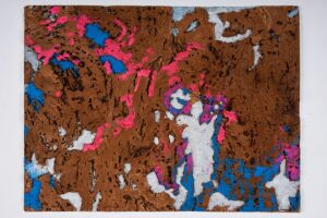 Tanta fu la suggestione dell’isola sarda che l’artista, in alcune opere ha utilizzato il sughero come base per dipingere con la tecnica dell’acrilico. Ecco alcune opere che presenta nella Mostra: Mario Apuzzo Archeologia del sogno, visioni segni colori materie e ritorno alla città d’origine che si tiene in Piazza Umberto I a Minori.